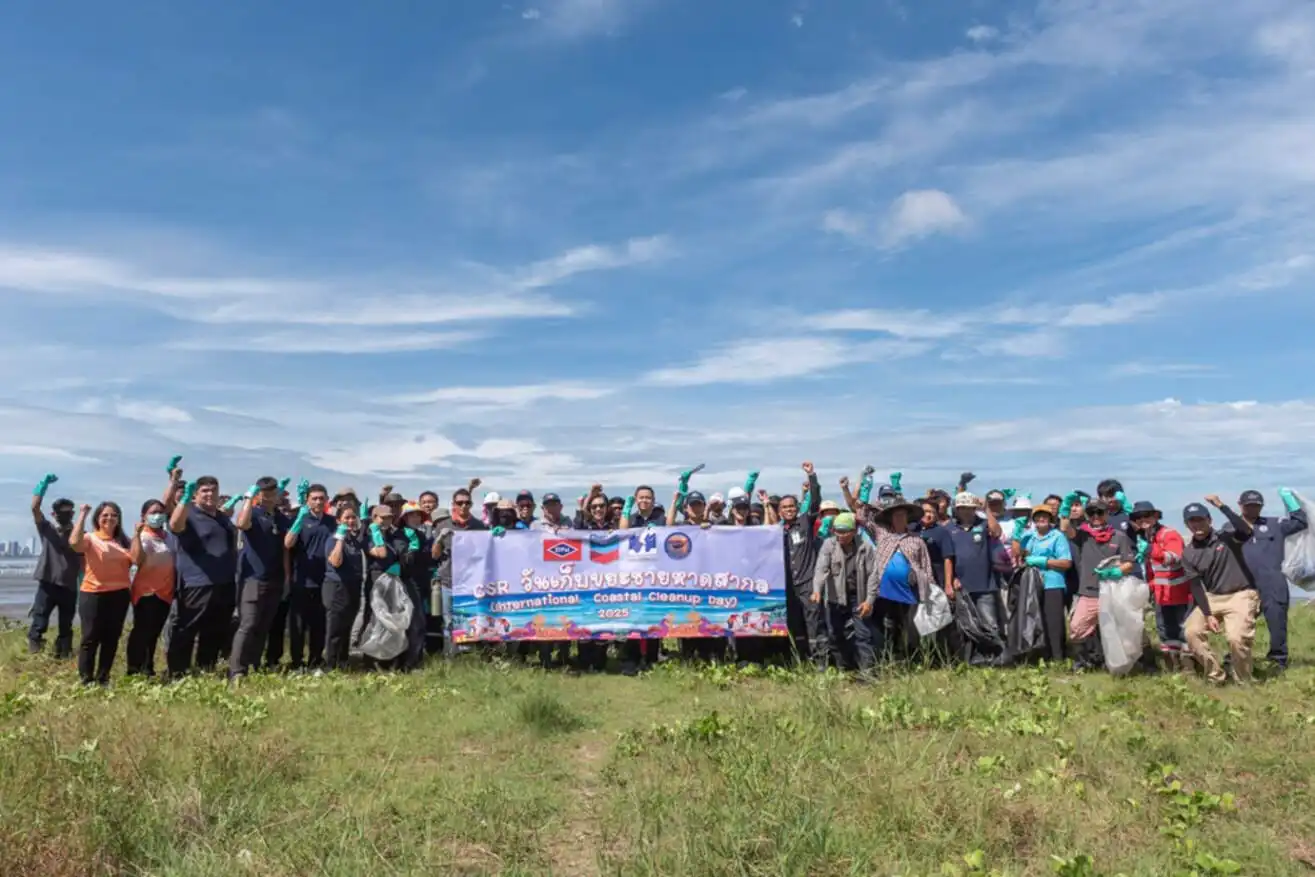 STP&I Public Company Limited collaborated with Chevron Thailand Exploration and Production Ltd. in organizing a beach cleanup activity at Bang Lamung Beach near Bang Lamung Home for Older Persons in Chonburi Province. The event was held to celebrate International Coastal Cleanup Day on September 20. The event brought together volunteer employees from both companies, as